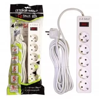 1-2.SALE сетевой фильтр ПВС 3х0.75 5роз. 5м 10А БЕЛЫЙ, земля, выкл. E1М 901419 купить в Ярославле по низкой цене с доставкой