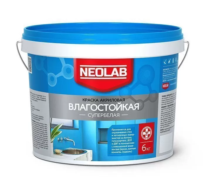 Акриловая супербелая краска ВЛАГОСТОЙКАЯ 6 кг (уп. 1 шт.) NEOLAB купить в Ярославле по низкой цене с доставкой