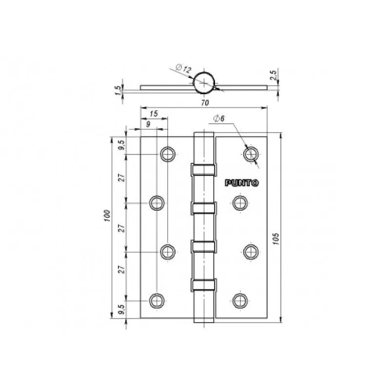 Универсальная дверная петля Punto 4B изготовлена из стали, подходит для дверей левого и правого открывания. Гальваническое покрытие прошло тест на устойчивость к коррозии в соляном тумане и соответствует 1 классу ГОСТ. В петле установлены втулка-подшипники и стальной стержень, что обеспечивает работоспособность 200 000 циклов открывания/закрывания. Максимальная нагрузка на 2 петли 40 кг, на 3 петли 60 кг. Размер петли: 100x70x2,5. Цвет: черный. Саморезы в цвет изделия в комплекте.