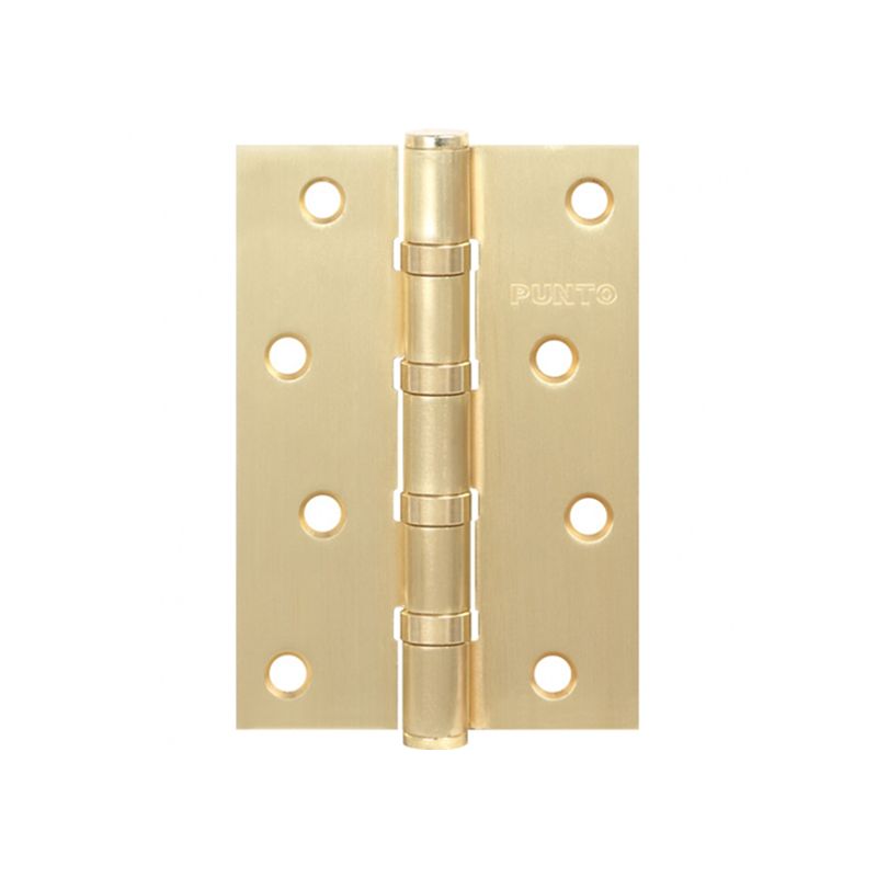 Универсальная дверная петля Punto 4B изготовлена из стали, подходит для дверей левого и правого открывания. Гальваническое покрытие прошло тест на устойчивость к коррозии в соляном тумане и соответствует 1 классу ГОСТ. В петле установлены втулка-подшипники и стальной стержень, что обеспечивает работоспособность 200 000 циклов открывания/закрывания. Максимальная нагрузка на 2 петли 40 кг, на 3 петли 60 кг. Размер петли: 100x70x2,5. Цвет: золото. Саморезы в цвет изделия в комплекте.
