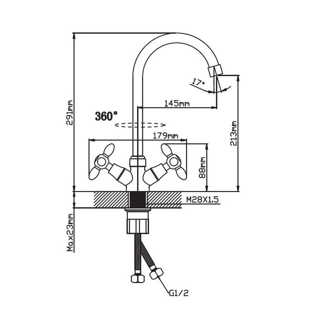 Смеситель для кухни двухручковый хром Potato Эверест B 59-071 A купить в Ярославле по низкой цене с доставкой