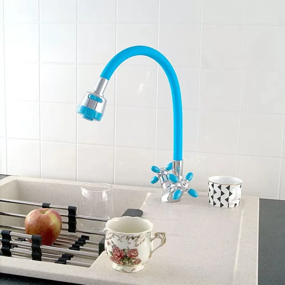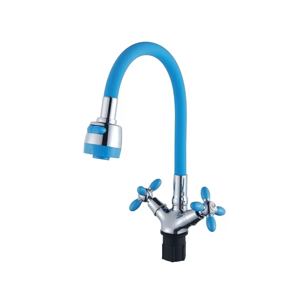 Смеситель для кухни двухручковый синий с хромом Potato Эверест B57-071D купить в Ярославле по низкой цене с доставкой