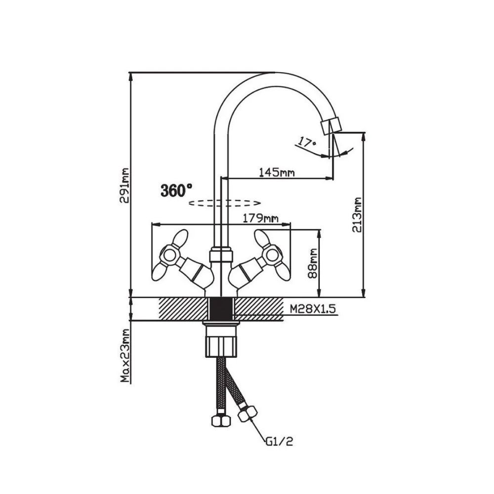 Смеситель для кухни двухручуовый черный Potato Эверест B 59-071 F купить в Ярославле по низкой цене с доставкой