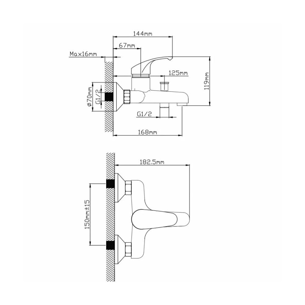 Смеситель для ванны и душа монокомандный черный Potato Эверест B30-0336 купить в Ярославле по низкой цене с доставкой