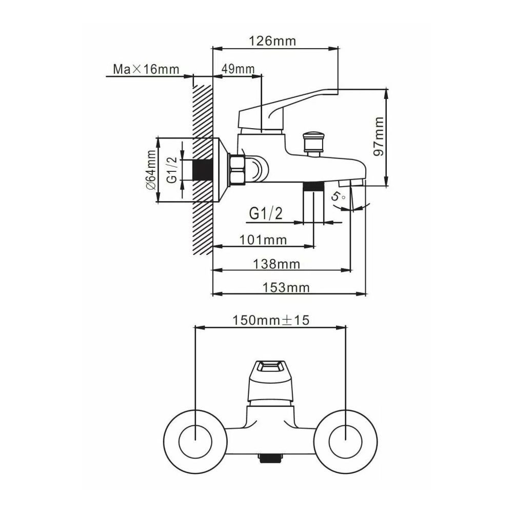 Смеситель для ванны и душа монокомандный хром Potato Эверест B30-028 купить в Ярославле по низкой цене с доставкой