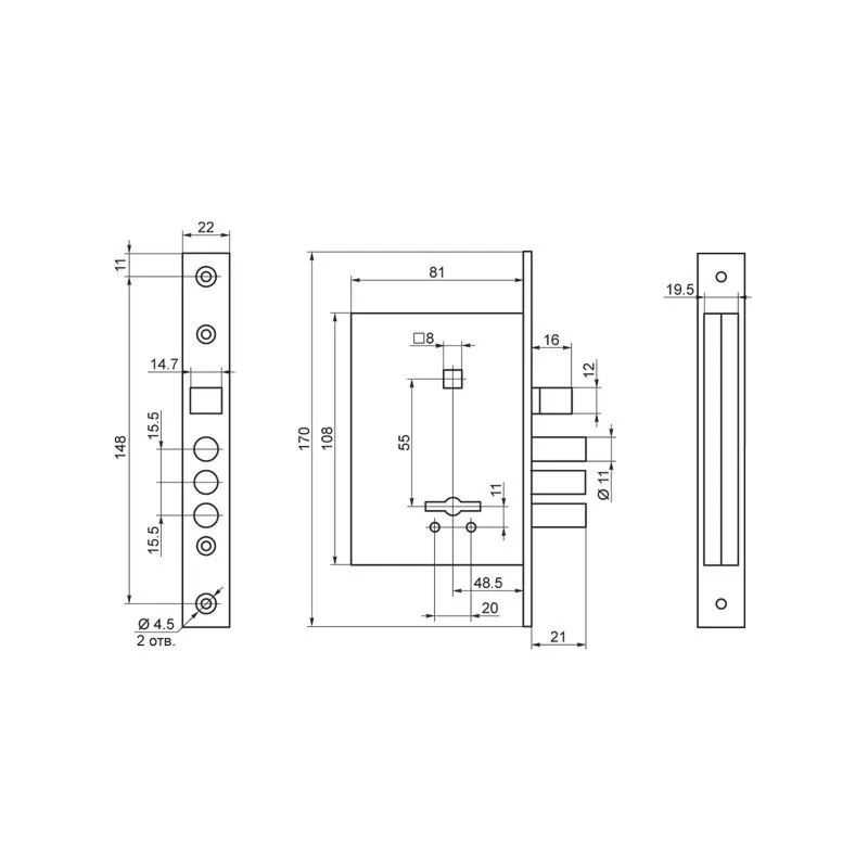 Бэксет (удаление ключевого отверстия),мм: 48,5