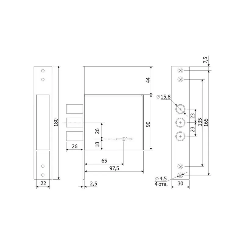 Бэксет (удаление ключевого отверстия),мм: 65
